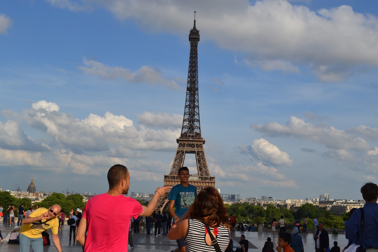 Un groupe de gens à la tour Eiffel
