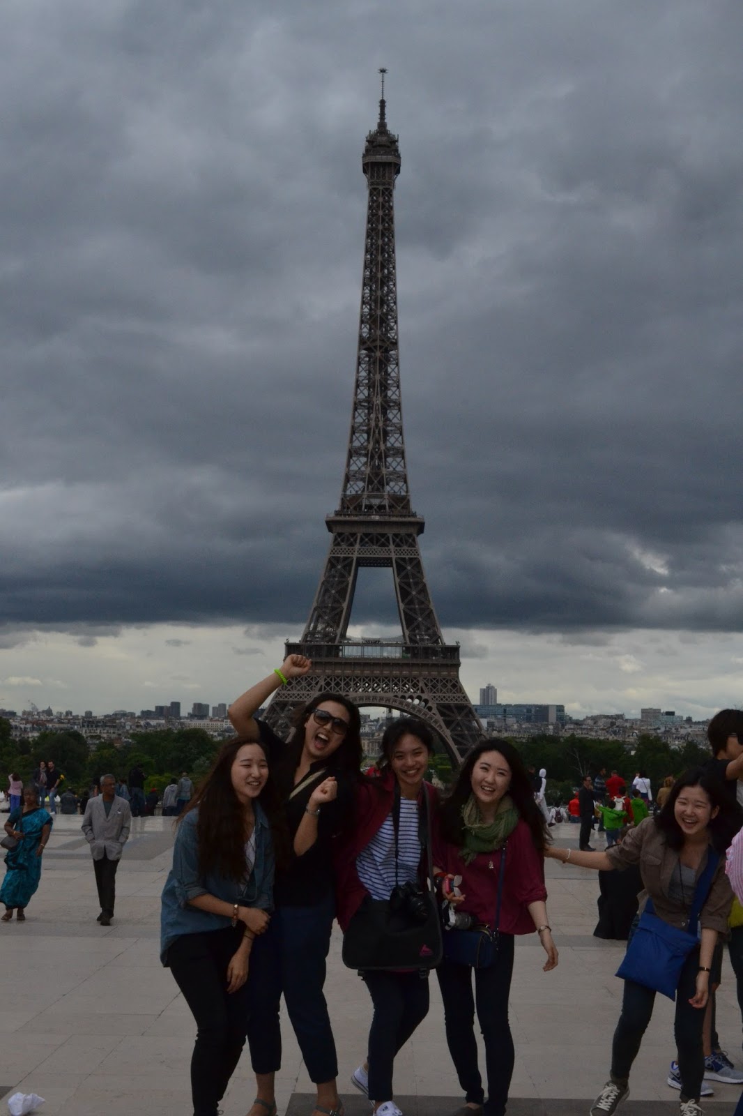 Un groupe de gens à la tour Eiffel