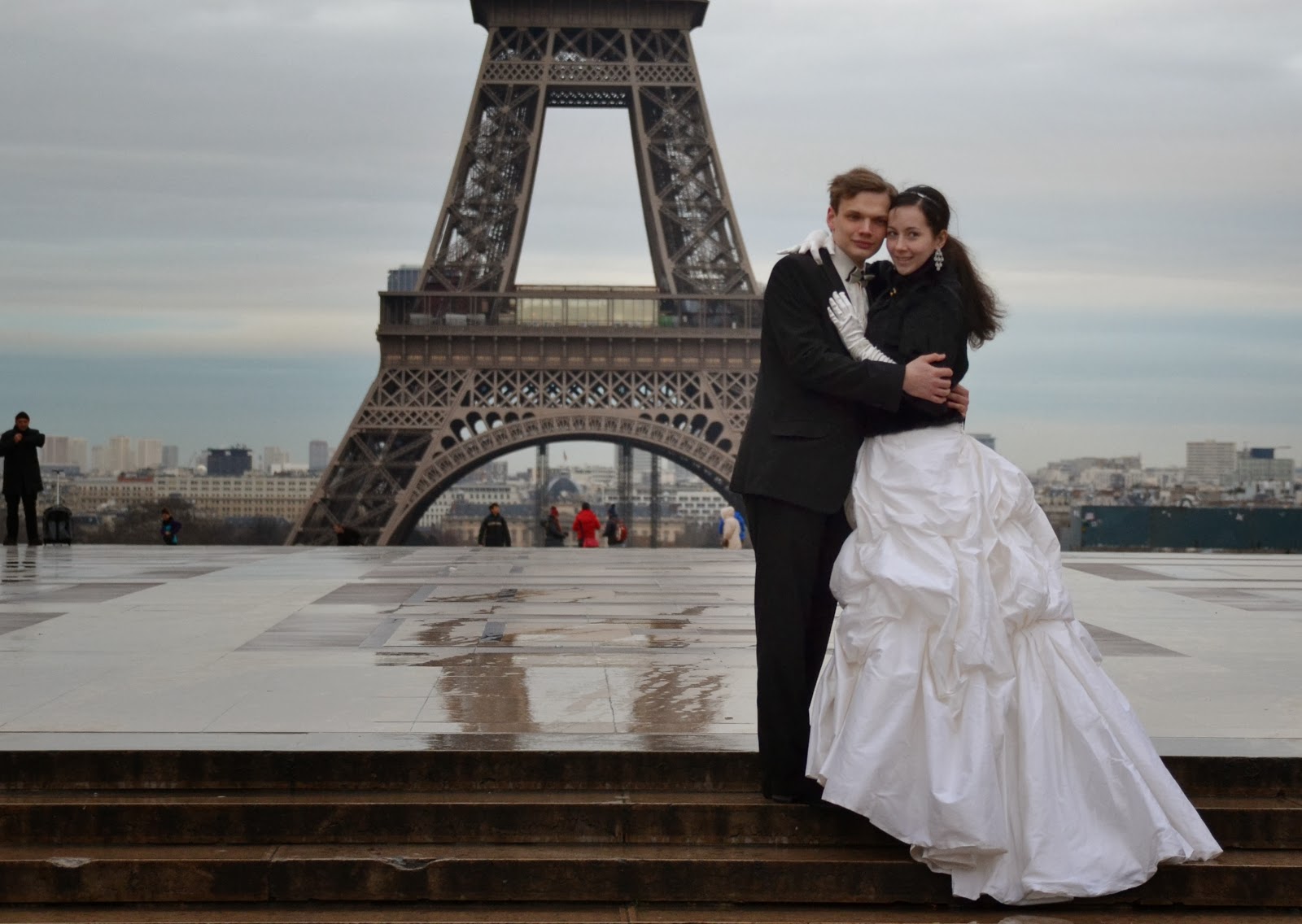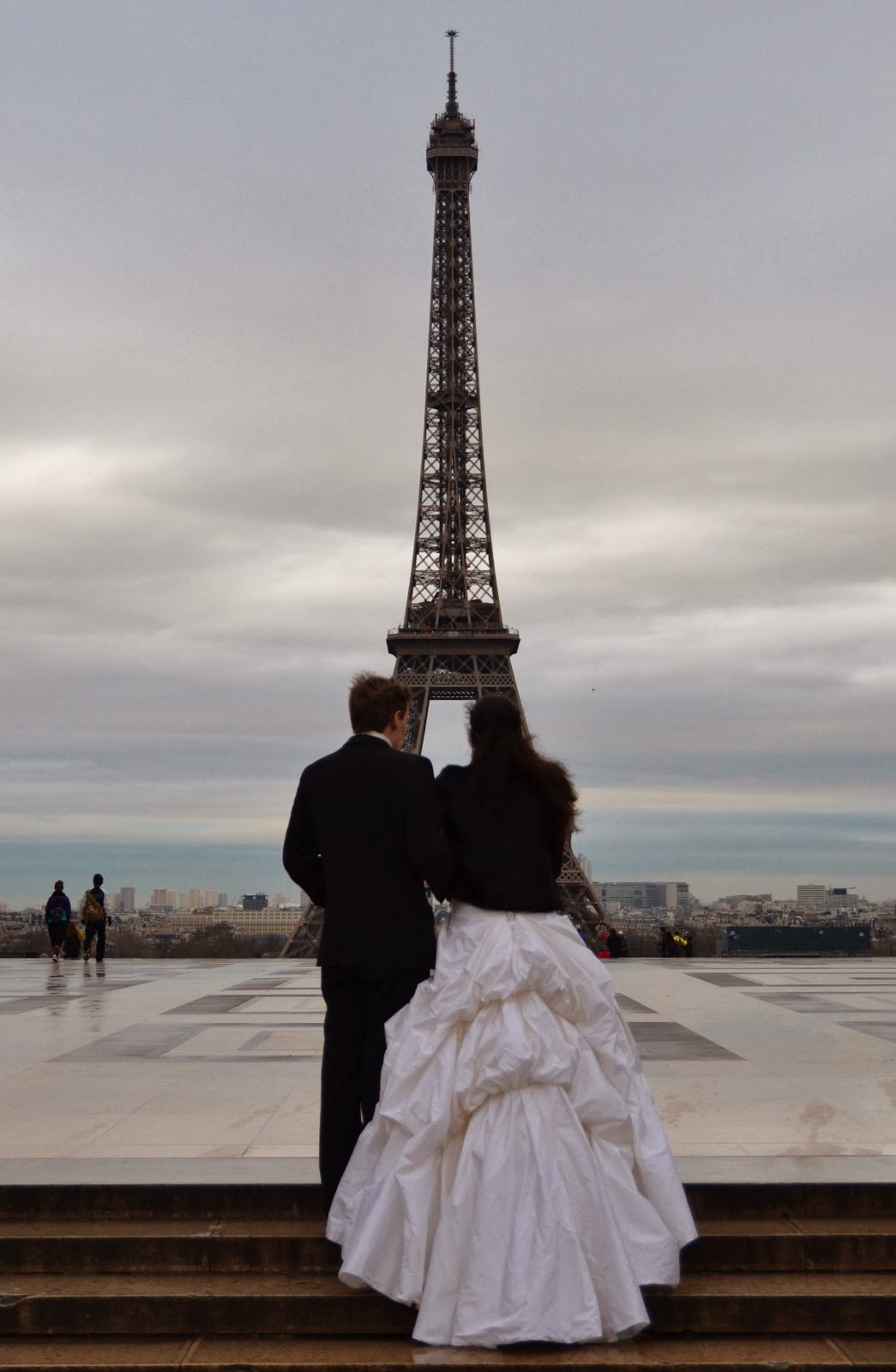 Un beau couple de mariés russes ce matin à la tour Eiffel